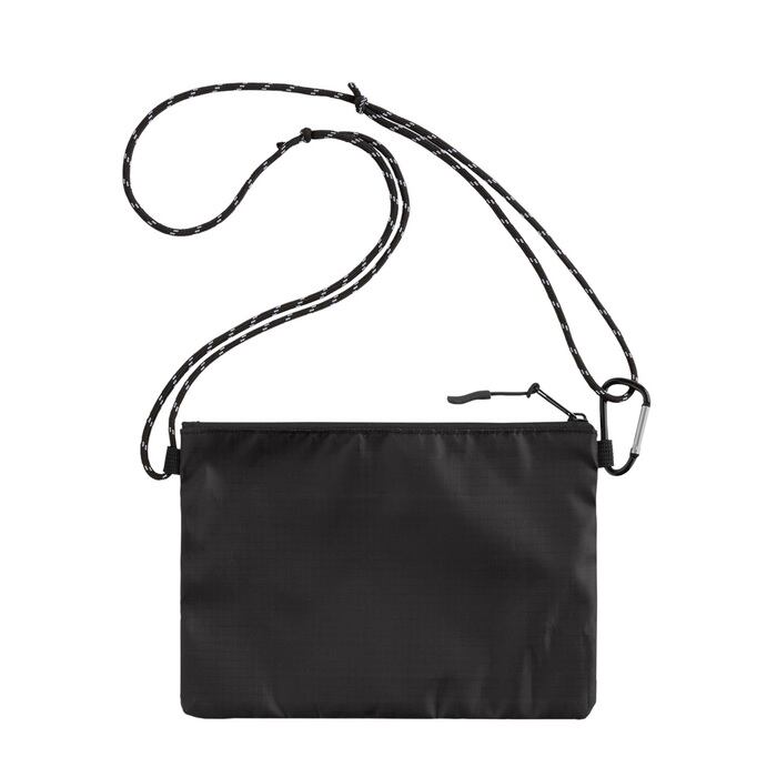 ロープタイプの長さ調整可能なカラビナ付きショルダーストラップ。